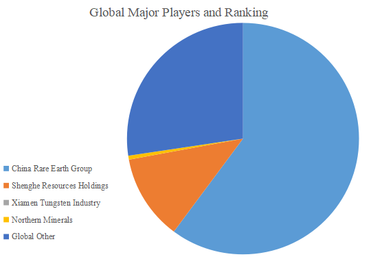 QYResearchのトップ企業研究センターによると、重希土類元素の世界的な主要製造業者には、China Rare Earth Group、Shenghe Resources Holdings、Xiamen Tungsten Industryなどが含まれている。2024年、世界のトップ3企業は売上の観点から約72.0%の市場シェアを持っていた。